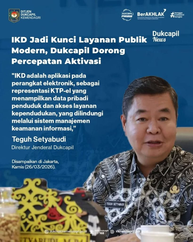 Dirjen Dukcapil, Teguh Setyabudi, menjelaskan, IKD merupakan bagian dari transformasi layanan publik menuju era pemerintah digital (Digital Government).