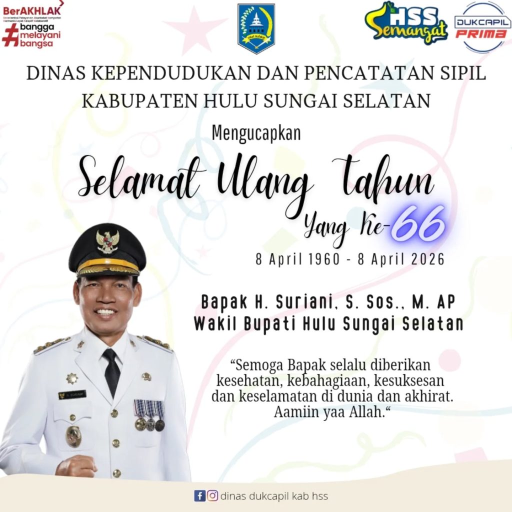 Keluarga Besar Dinas Kependudukan dan Pencatatan Sipil Kabupaten Hulu Sungai Selatan Mengucapkan :