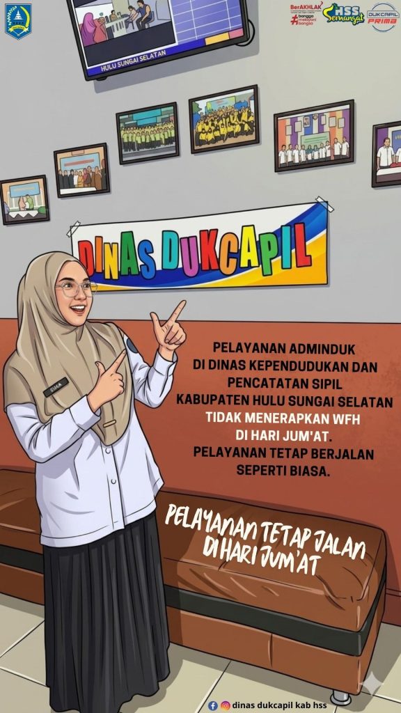 Pelayanan adminduk di Dinas Kependudukan dan Pencatatan Sipil Kabupaten Hulu Sungai Selatan TIDAK MENERAPKAN WFH DI HARI JUM’AT.